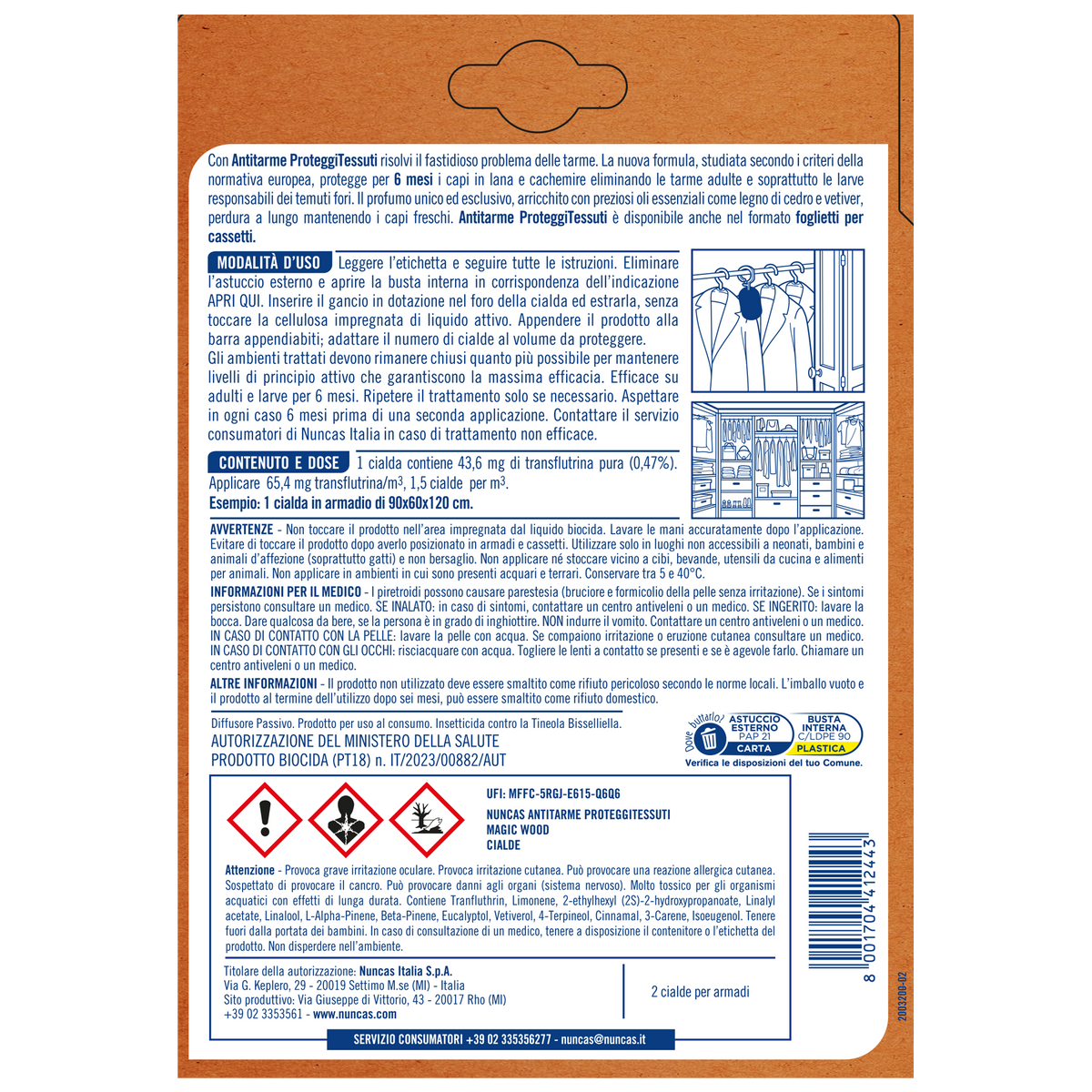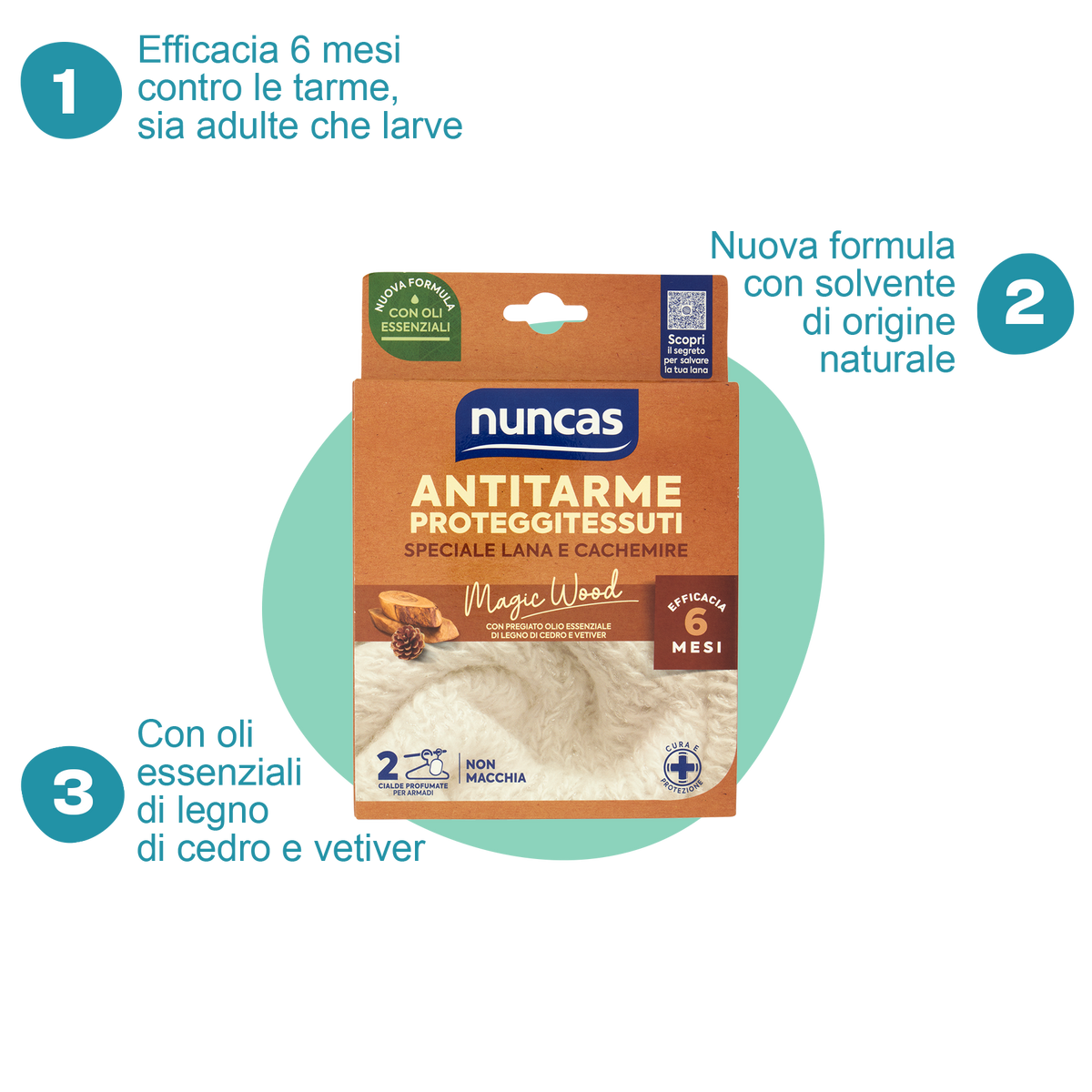 Antitarme Proteggitessuti Cialde Magic Wood protegge i tuoi capi per ben 6 mesi dal fastidioso problema delle tarme! La nuova formula con solvente di origine naturale e la profumazione - Magic Wood - arricchita da pregiati oli essenziali garantiscono una protezione totale e rilasciano un delicato profumo che dura nel tempo.
