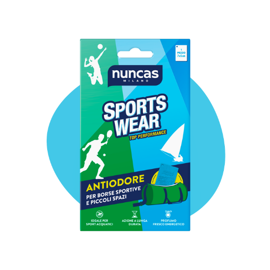 Sportswear Antiodore Borse e Piccoli Spazi è la placchetta deodorante che elimina odori di sudore, umidità e cloro. Perfetta per borse, armadietti e ceste, è idrorepellente e sicura anche a contatto con capi bagnati. Ideale anche per gli sport acquatici.