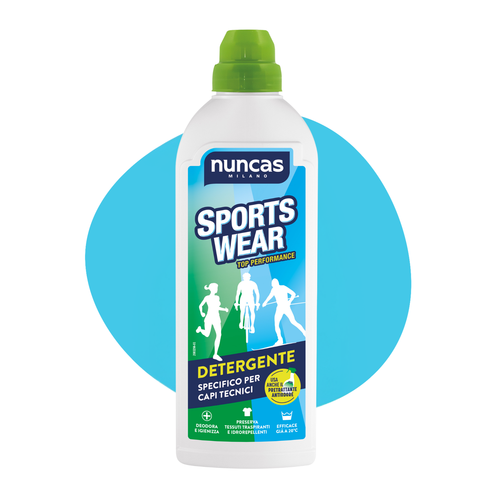 Sportswear Detergente Specifico, un detergente per capi tecnici, lava in profondità e rigenera i tessuti e gli accessori sportivi, anche i più tecnici ed innovativi. Efficace a basse temperature sulle macchie e lo sporco tipico dello sport.