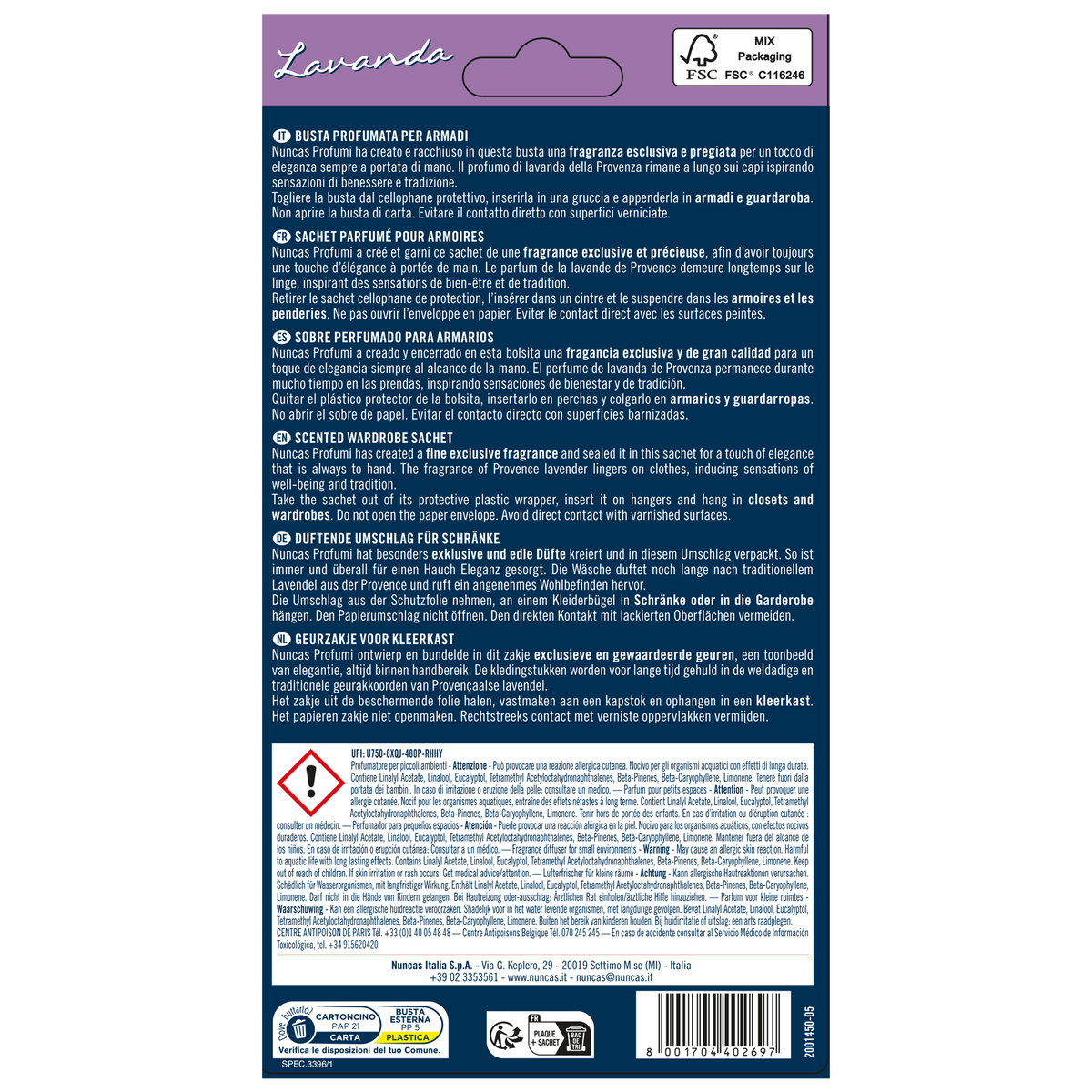 Le Buste profumate di Nuncas, con il profumo Lavanda, personalizzano i tuoi armadi con fragranze uniche e raffinate, frutto di un'accurata selezione, che guidano i sensi in un viaggio meraviglioso fatto di memorie, desideri e sensazioni.