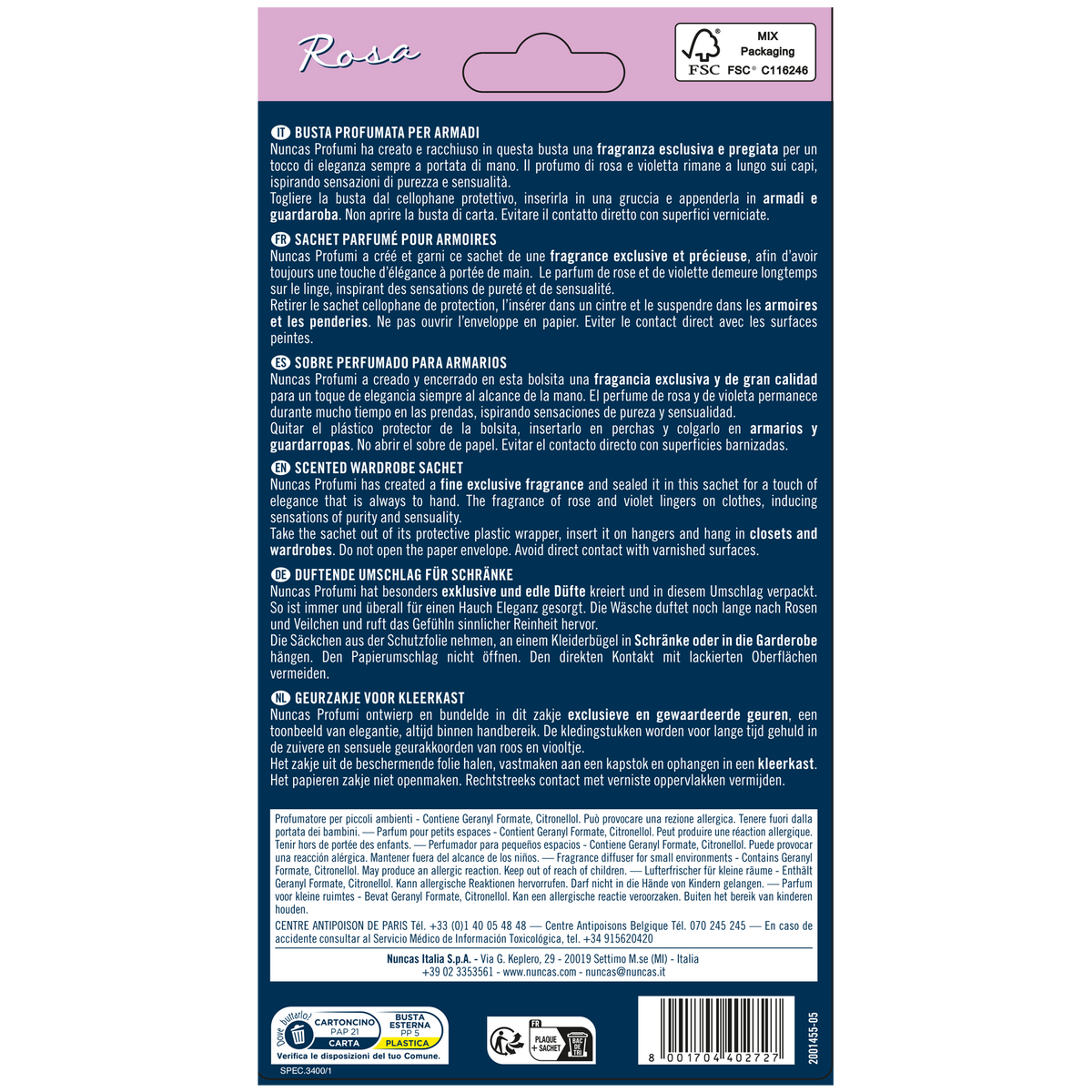 Le Buste profumate di Nuncas, con il profumo Rosa, personalizzano i tuoi armadi con fragranze uniche e raffinate, frutto di un'accurata selezione, che guidano i sensi in un viaggio meraviglioso fatto di memorie, desideri e sensazioni.