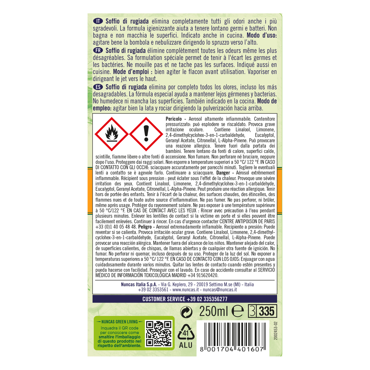 Con la sua formula igienizzante sviluppato di Nuncas, elimina definitivamente e in maniera efficace tutti gli odori più sgradevoli di cibo, fumo etc.