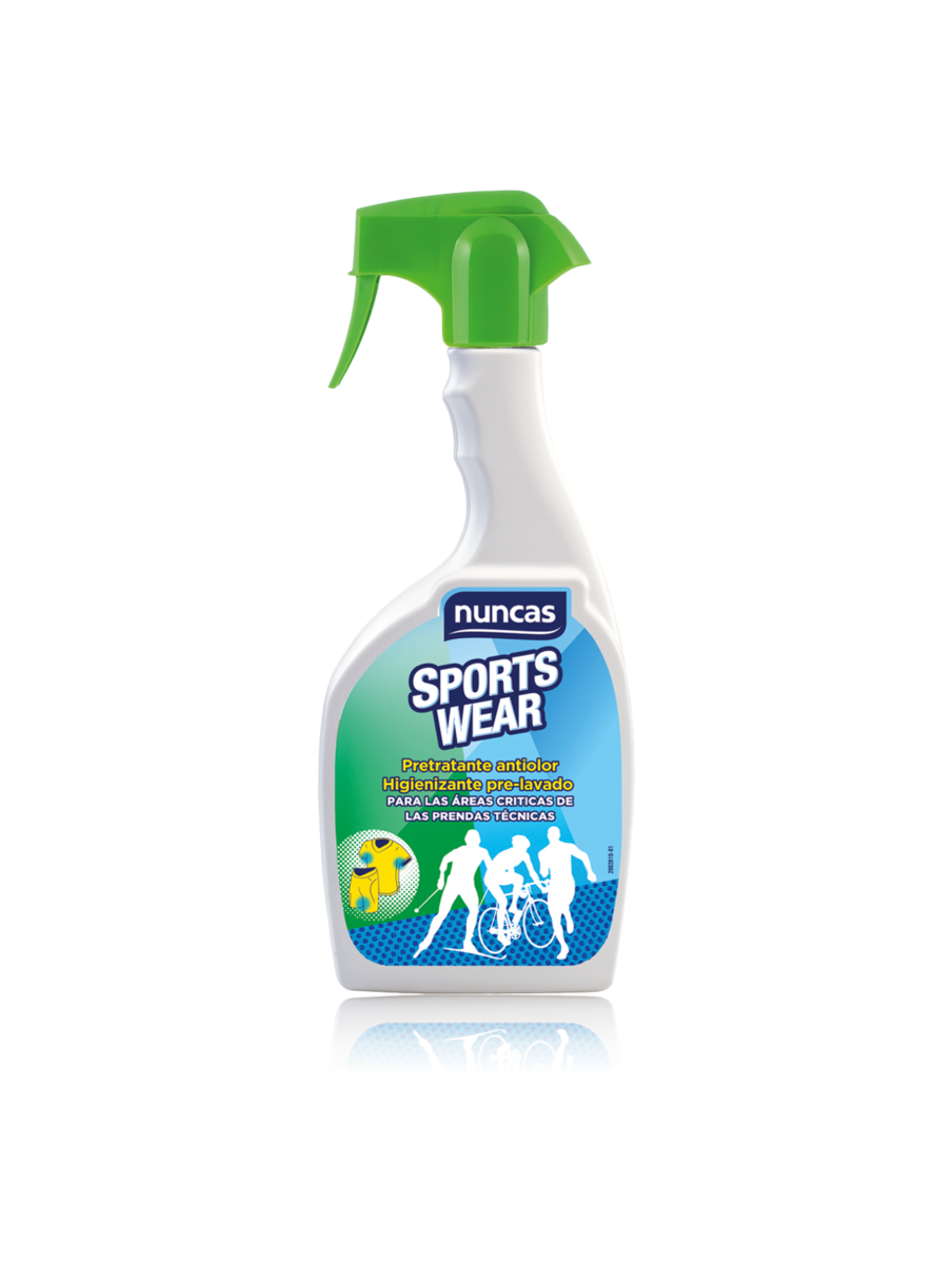 Nuncas Sportswear Pre-Tratamiento Antiolor es el innovador pretratamiento diseñado para higienizar la ropa deportiva compuesta por fibras sintéticas y naturales que entran en contacto directo con la piel. Lavado directamente sobre camisetas, pantalones cortos y ropa interior antes del lavado, disuelve el sudor y elimina los olores más persistentes y los microorganismos que los provocan. Sus principios activos se incorporan a las fibras y garantizan una acción higienizante duradera, incluso durante el uso posterior. Respeta las fibras más delicadas y no alteres los colores.