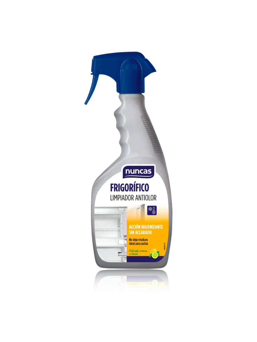 Nuncas Refrigerador es un detergente con una fórmula especial para limpiar e higienizar eficazmente tanto el interior como el exterior del frigorífico. Beber alcohol y compuestos higienizantes, limpia drásticamente los residuos que puedan entrar en contacto con los alimentos, incluso sin aclarar. Práctico y rápido, elimina los olores - sinónimo de presencia bacteriana y orgánica - aportando un agradable aroma a limón fresco.