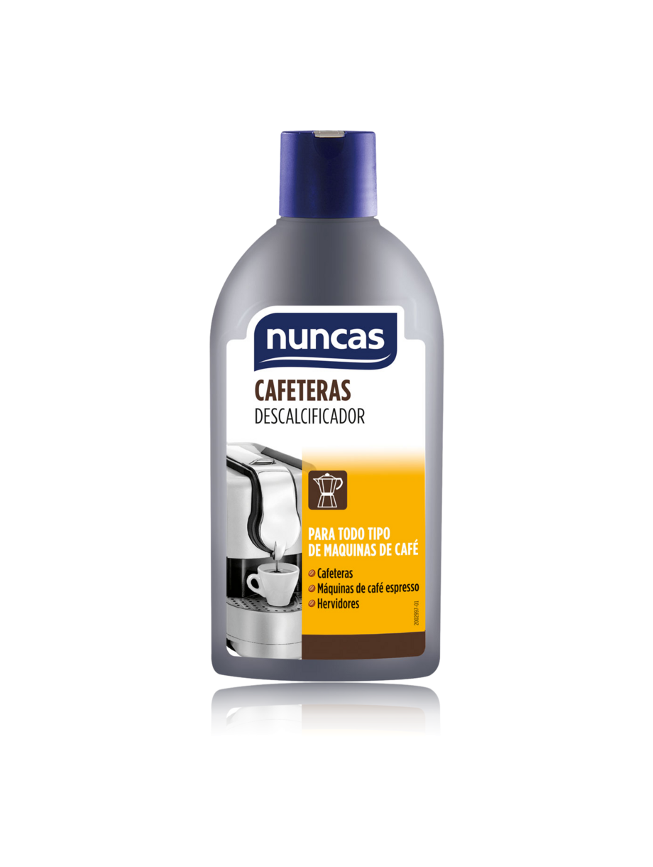 Nuncas Cafeteras es un producto desincrustante específico diseñado para disolver de forma rápida y segura el calcio que se deposita en el depósito de agua y en los filtros de las cafeteras estilo moka y cafeteras express. Tiene un alto poder desincrustante, capaz de liberar rápidamente las burbujas de los filtros y así permitir que el agua se filtre correctamente a través del polvo del café, de forma uniforme, captando todo el sabor. A base de ácido, se aclara completamente sin dejar residuos; No atacar componentes plásticos como juntas o tubos.
