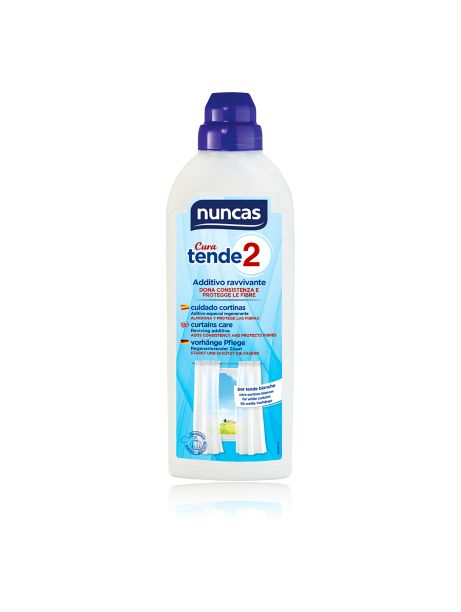 Nuncas Cortinas 2 Cortinas es un verdadero y auténtico tratamiento profesional para las cortinas de tu hogar, de cualquier color o forma. Tras la limpieza final, se deposita sobre los tejidos de forma homogénea formando una película protectora transparente que evita la absorción de polvo, contaminación y olores. Acción rápida para dar volumen y consistencia al cabello, revitaliza la fibra y las caderas, aportando a las cortinas el "pliegue profesional" que las vuelve fluidas y con muchas ondas. Extendidos gracias a este aditivo único y unidos entre sí, no es necesario plancharlala. Un filtro UV especial previene el amarilleo y realza el blanco.