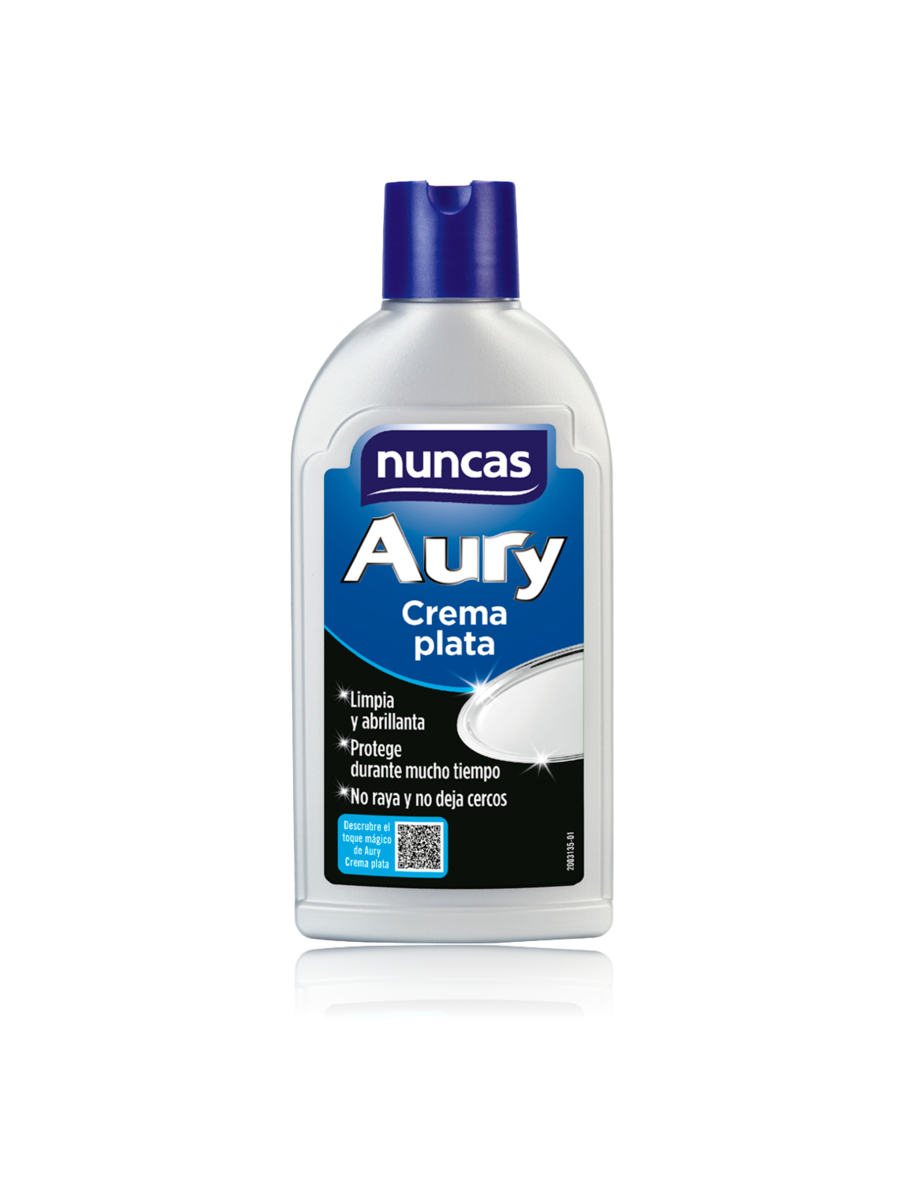 Nuncas Aury Crema es una emulsión valiosa específica para la limpieza de todos los objetos de plata maciza y objetos plateados (incluido el metal plateado). Encierra en su fórmula especial una acción química que disuelve el ennegrecimiento y una mecánica que abrillanta la superficie como un polish. Elimina delicadamente y de modo seguro también las oxidaciones más resistentes sin riesgo de abrasión, gracias a la presencia de GLITTEX, registrado por Nuncas, deja una película protectora sobre la plata que preserva y protege durante mucho tiempo el brillo original.