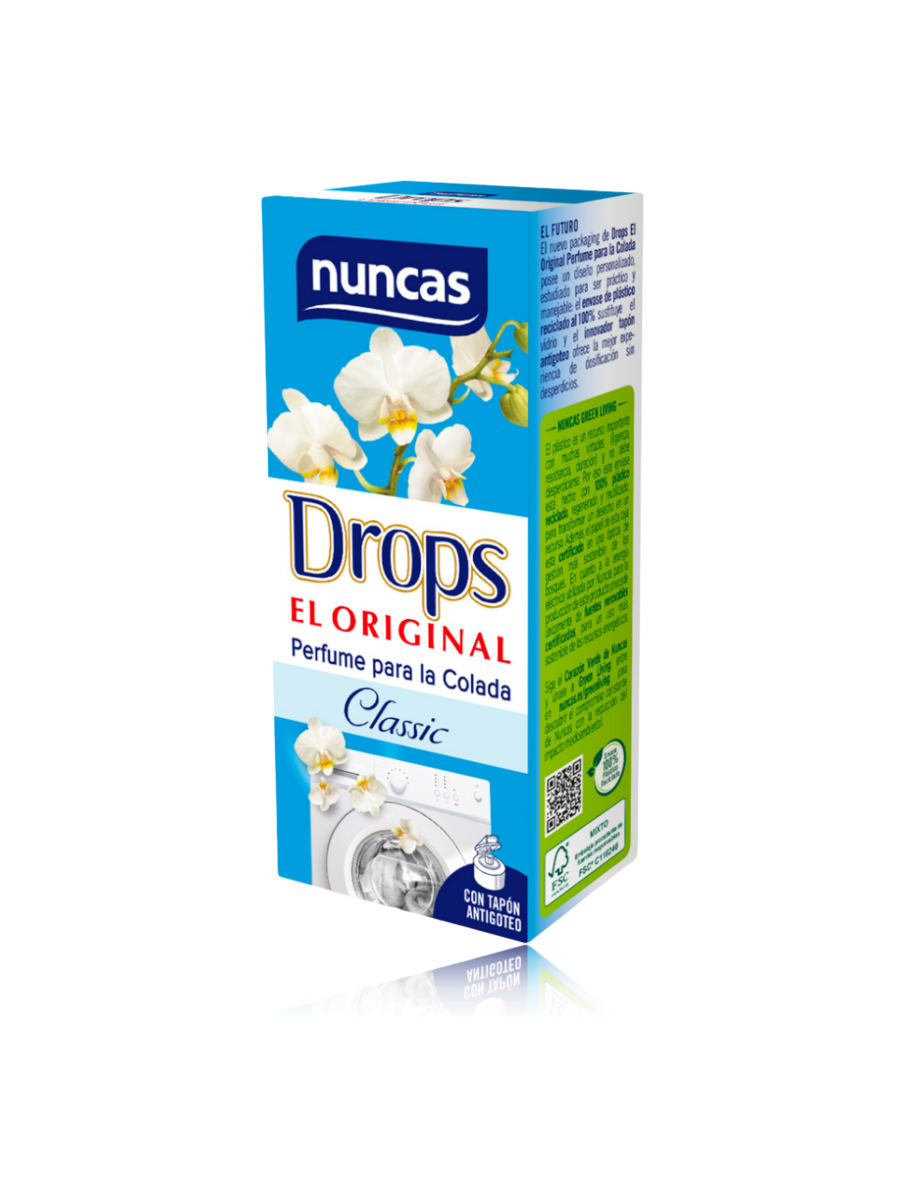 Bastan unas gotas del perfume Drops Clásicos en el último aclarado para aportar a toda la ropa un aroma sutil y refinado que permanece en los tejidos durante mucho tiempo, aportando una agradable sensación de bienestar. Estas fragancias Nuncas son especialmente duraderas y persisten en la colada.