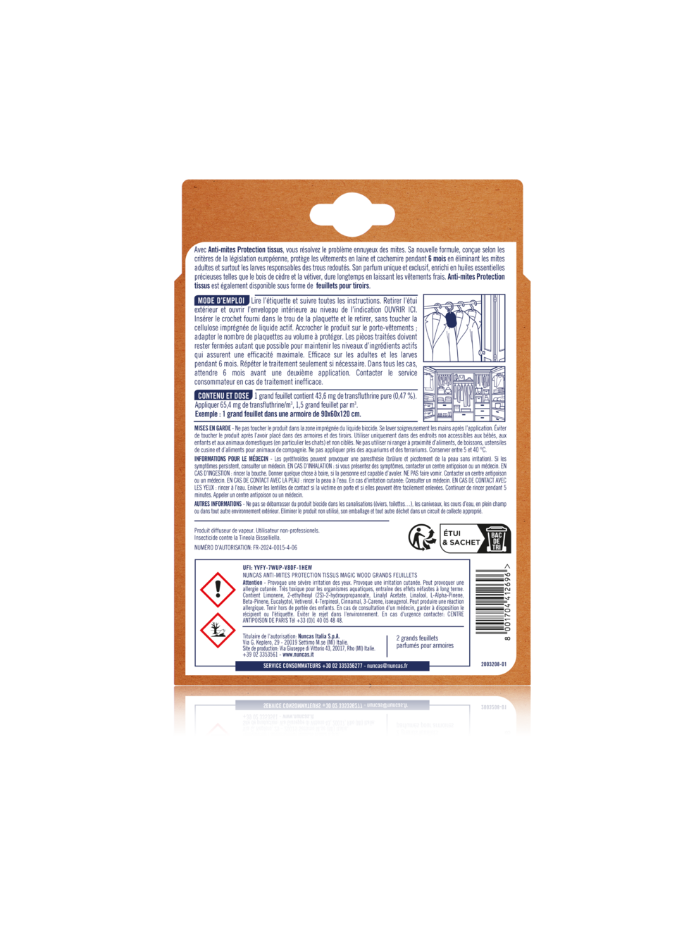 Antimites Protection Tissus Grands Feuillets Magic Wood - 2 feuillets