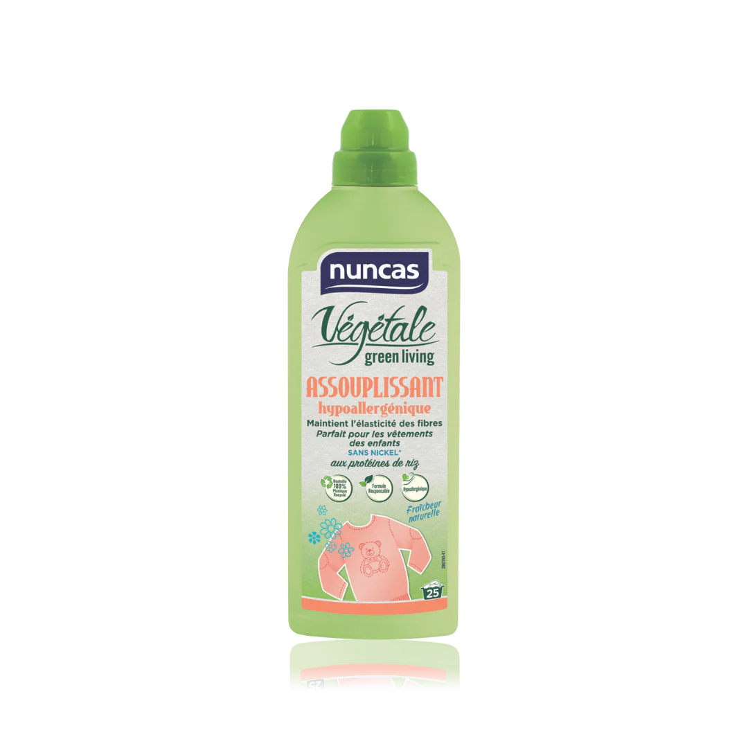 L’Assouplissant Végétal hypoallergénique prend soin des vêtements en toute sécurité, les rendant doux, aérien et naturellement parfumés. Cet assouplissant écologique de Nuncas contient un agent actif révolutionnaire d’origine végétale qui empêche le dépôt de calcaire sur les fibres, principale cause du durcissement des tissus.