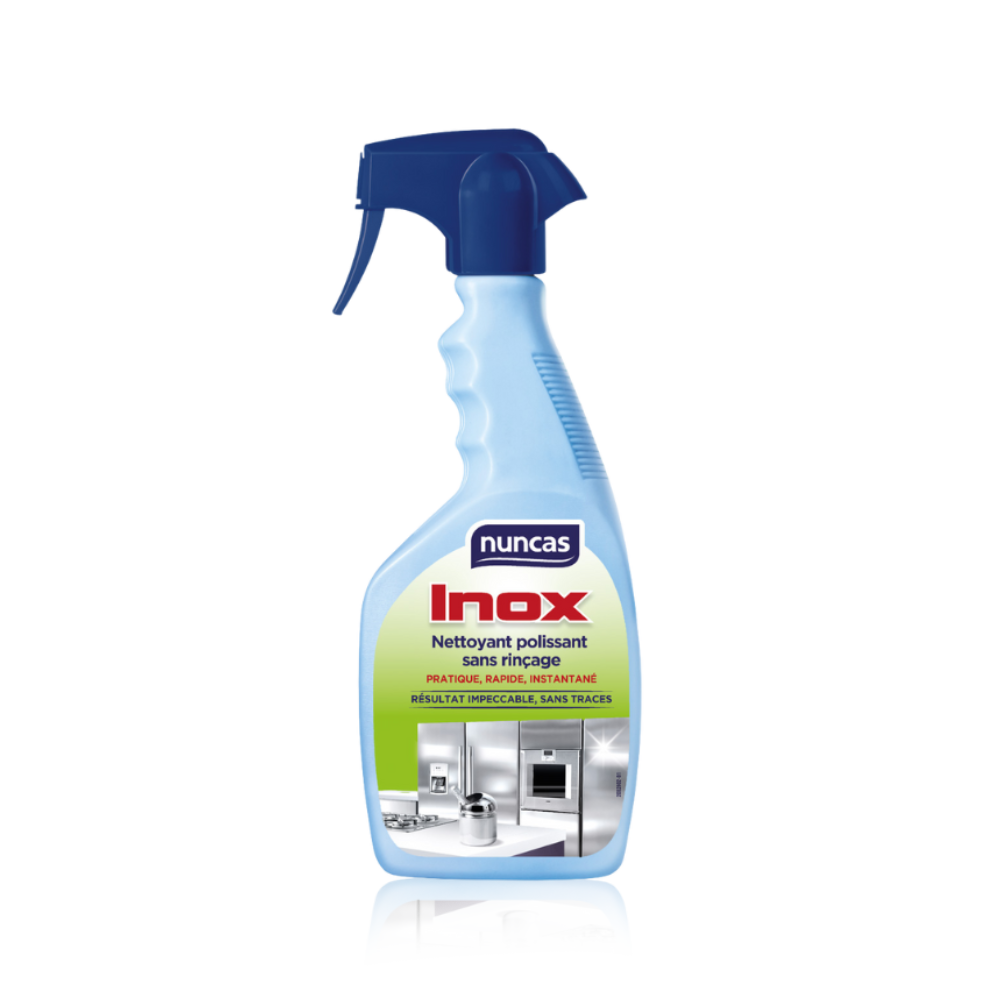 Produit pour nettoyer tous les jours toutes les surfaces chromées et en acier inoxydable. Inox Nettoyant Polissant de Nuncas enlève efficacement les empreintes et les taches des appareils électroménagers, robinets et objets de décoration, sans laisser d'auréoles en redonnant à leur surface toute sa splendeur.