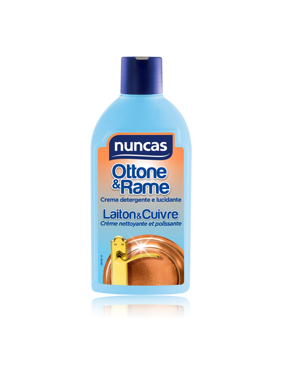 Crème pour faire briller tous les objets et les surfaces en laiton, en cuivre et en bronze. Sa formule de Nuncas contient une très fine poudre abrasive qui élimine des surfaces les traces de doigts et les jaunissements dus au contact avec les aliments et les boissons, sans rayer. Sa formule enrichie avec des huiles minérales antistatiques protège de la poussière et des dépôts de calcaire, en redonnant aux objets le brillant du neuf.