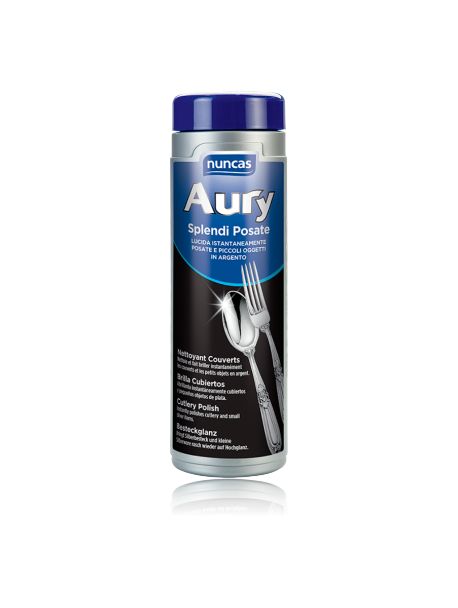 Aury Nettoyant couverts est un produit spécifique pour éliminer l'oxydation de tous vos couverts et petits objets de décoration en argent. Grâce à sa formulation concentrée, il élimine toutes les traces. Il suffit d'une simple immersion de l'objet dans le liquide actif. Son action instantanée le rend idéal dans toutes les occasions.