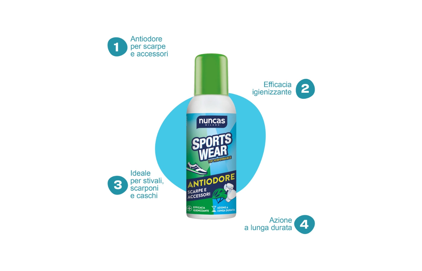 Il deodorante specifico per scarpe dalla formula innovativa ed efficace che debella gli odori sgradevoli e ne ritarda la formazione. La sua formula igienizza tutte le scarpe sportive mantenendole sane e rinfrescate.